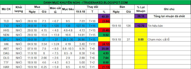 DANH MỤC KHUYẾN NGHỊ THEO HỆ THÔNG ITRADENAKED - CẬP NHẬP NGÀY 19.09